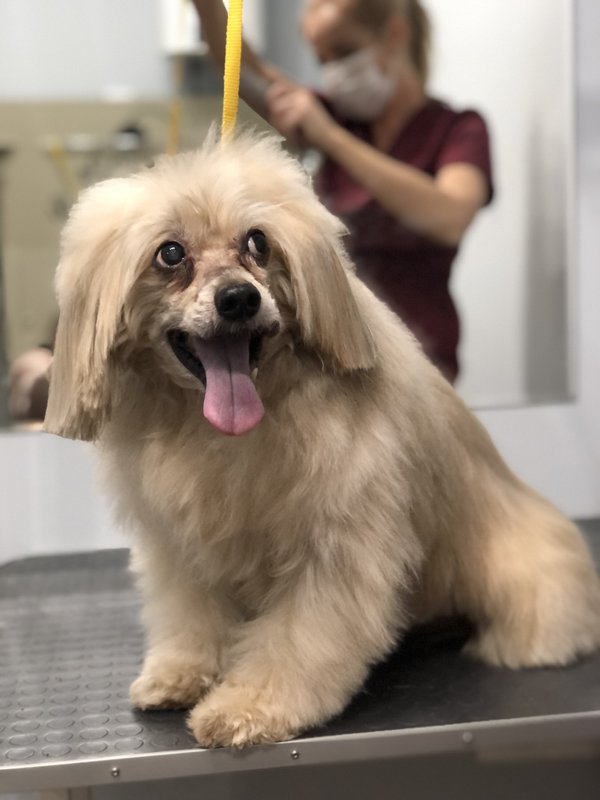 Стрижка была ровная. У нас конфликтная и неспокойная собака, но все прошло хорошо. Пекинеса просто подстригли покороче: животик и ножки, спинку почти не трогали. Мастер спокойная и добрая, понравилась хорошим подходом.